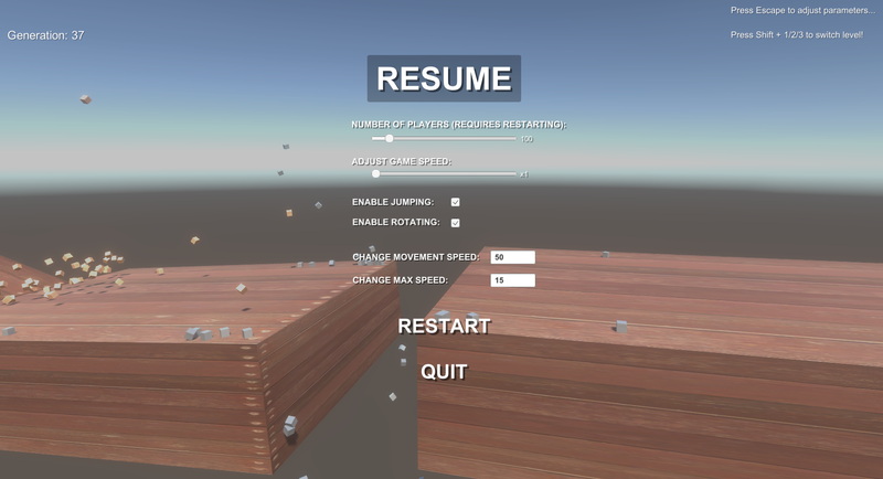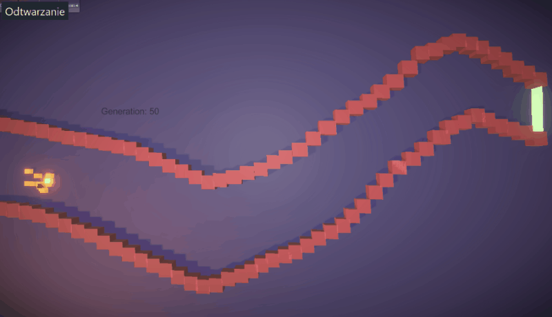 - When the first player reaches the goal, the minStep variable is assigned which is the minimum of steps he needed to take to reach the goal. From now on, if any player takes more steps then minStep, he will die. This makes them optimise their way so they get to the goal faster each generation.