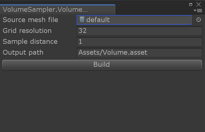 VolumeSamplerWindow builds a Volume asset from a mesh file & save it in a project.