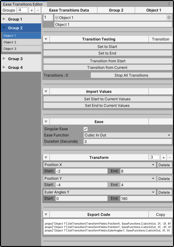 ETS comes with a custom editor window that can be found under [Tools/Ease Transitions Editor].