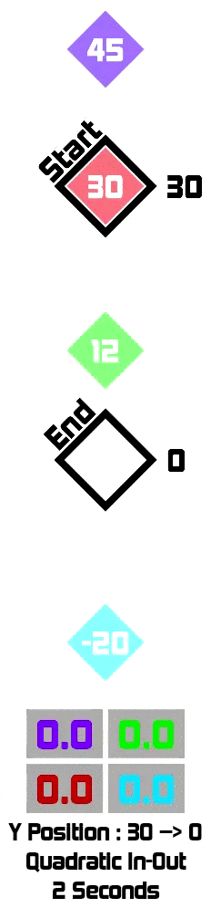 4 diamonds, each being transitioned from 30 to 0 in 2 seconds.
